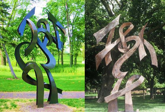 Calligraphy | painted steel | left or patinaed wood | right